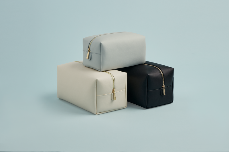 100% poliuretano effetto pelle. Beauty case in saffiano a grana fine, multiuso, scomparto principale con cerniera in metallo dorato lucido, rivestimento morbido al tatto, etichetta removibile, disponibile anche in taglia L. Dimensioni: 23 x 11 x 11 cm. Capacita': 3 litri.