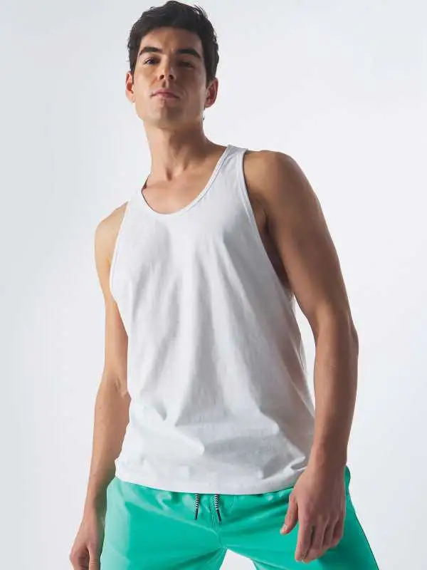 100% cotone. Canotta unisex ideale per sport, palestra e spiaggia con un ampio giromanica. Etichetta strappabile. Colori fluo 100% poliestere.